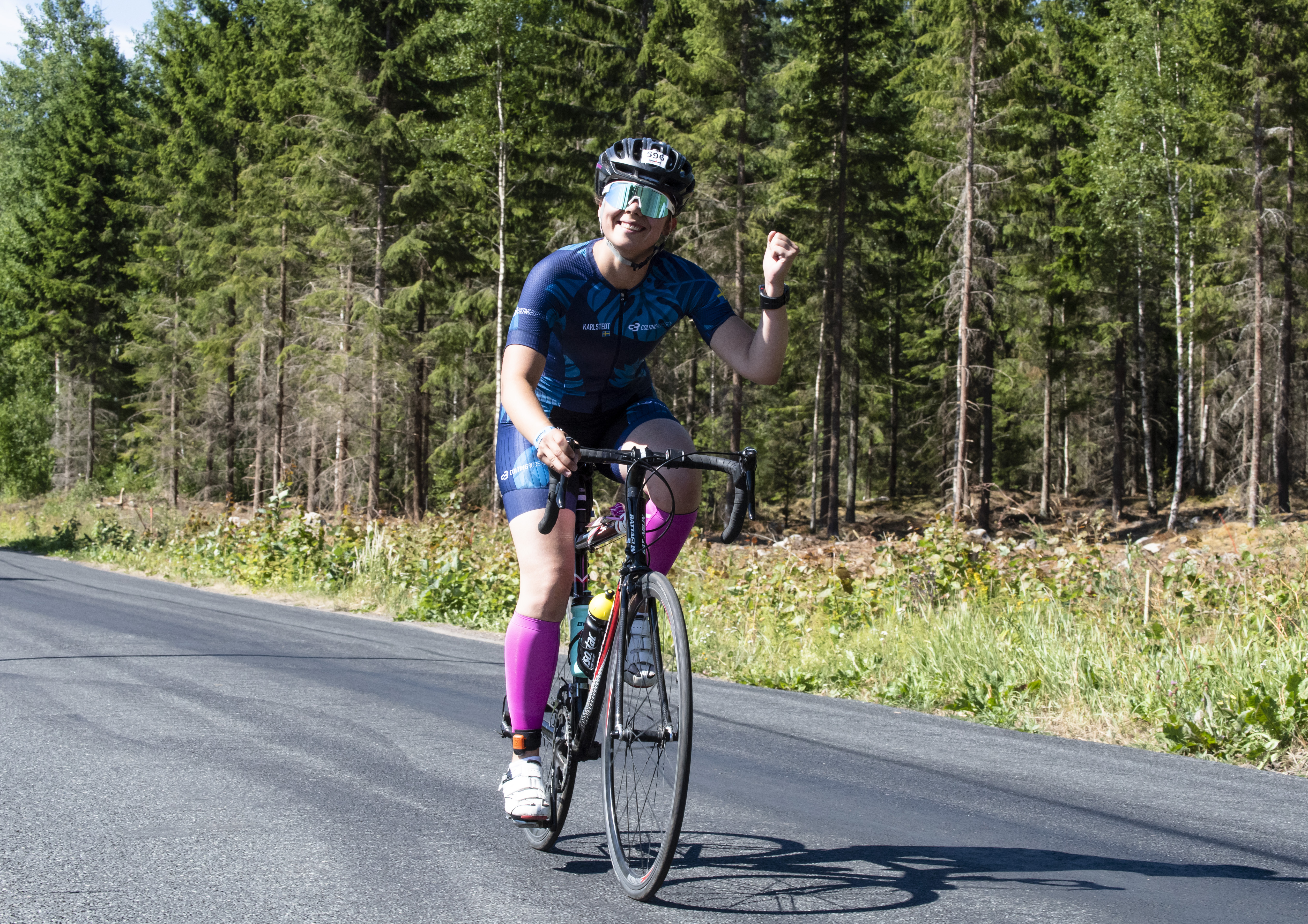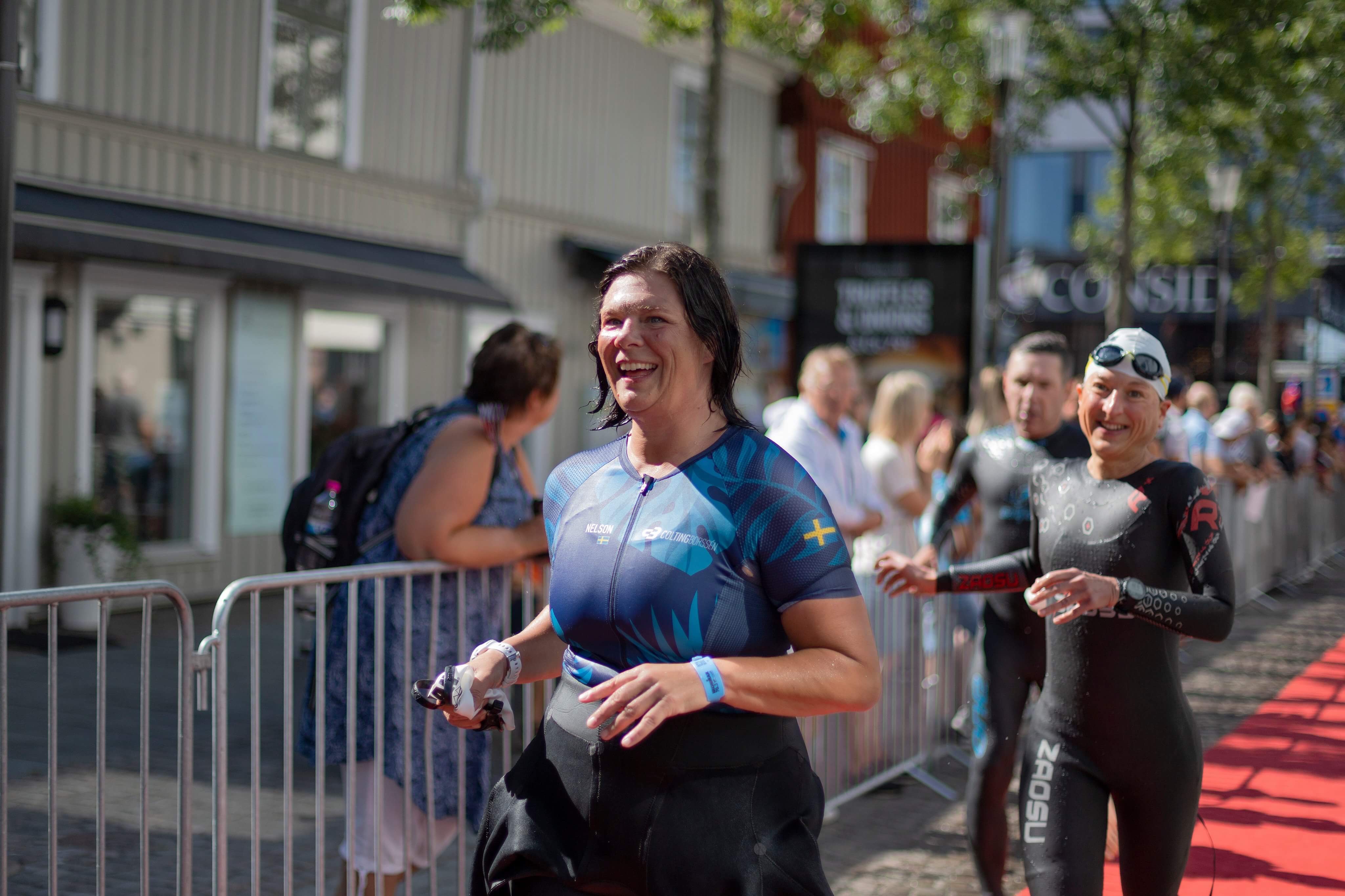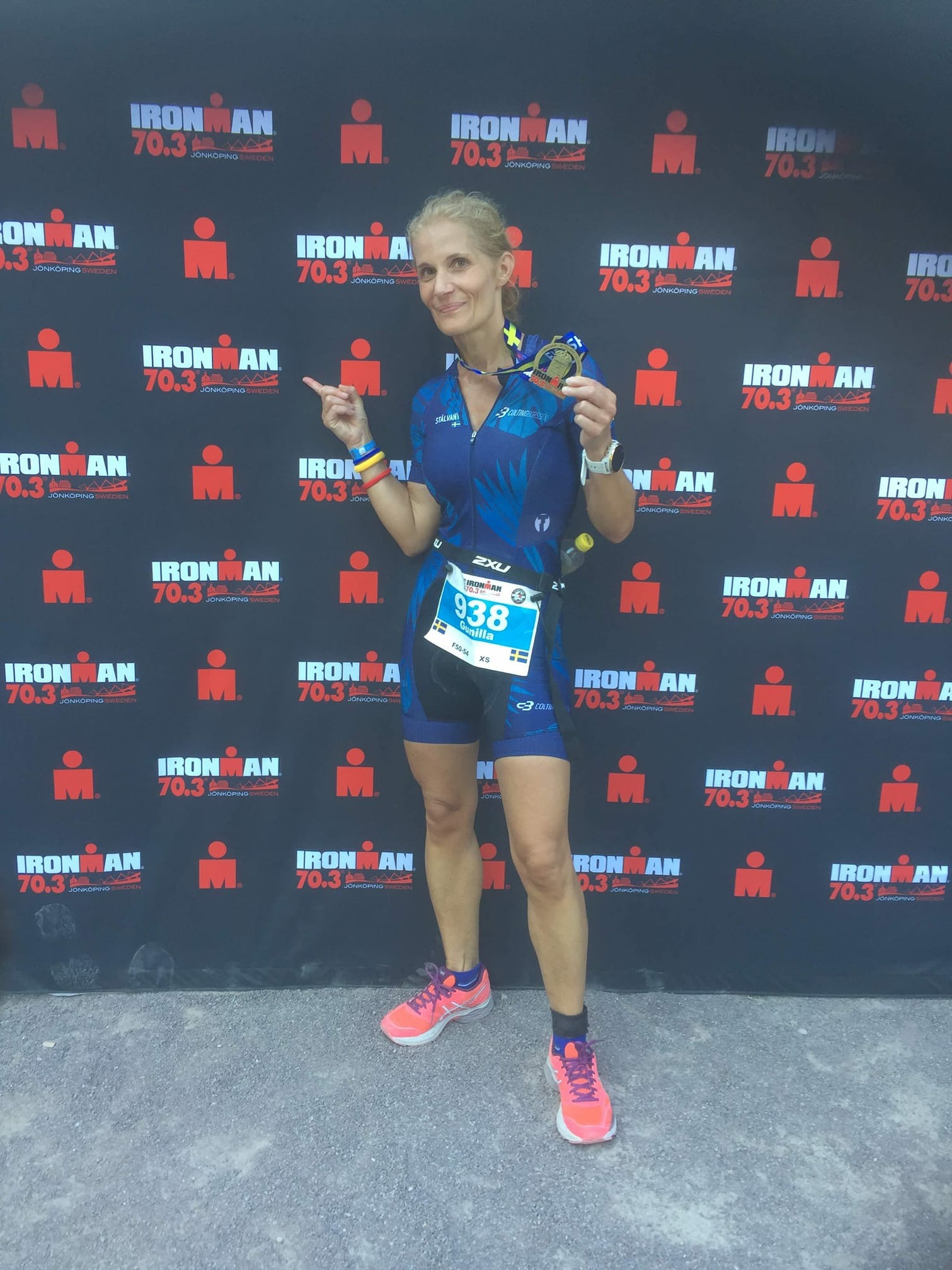 ”Så var examensdagen klar & loppet genomfört. Målet var 7h & jag gled över mållinjen otroligt stolt på 6:50. Stort tack till alla som peppat under hela denna resan sen starten i Oktober. Och en stor kram till Jojje & Jonas som stöttat med utomordentlig coachning som nu ger mig möjlighet att välja mellan tre grenar på nästa pass. Att från total nybörjare på simning idag klara banan på 42 min, så jäkla stolt!” – Annette Sjölander