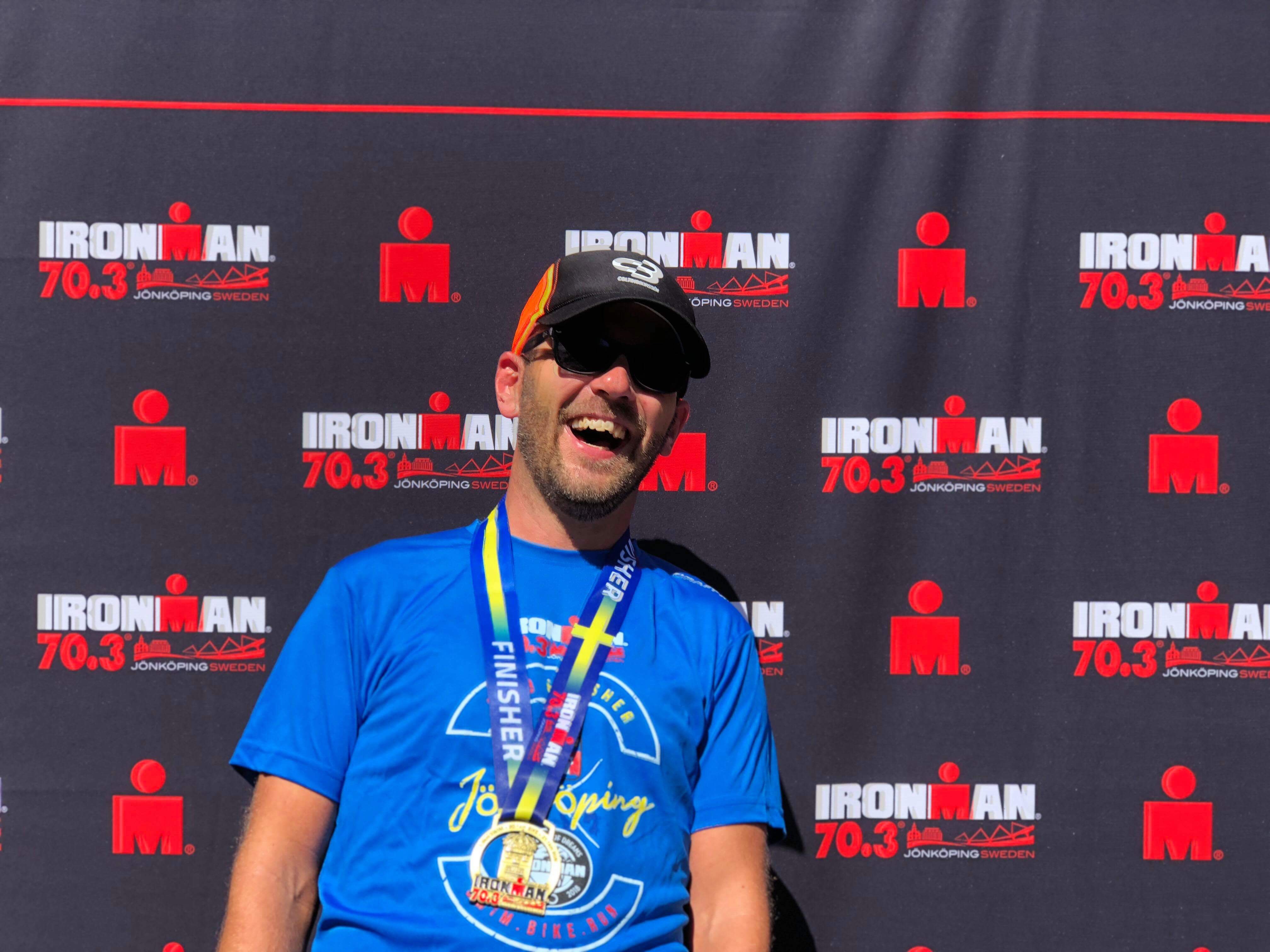 Supermotionären Peter Fällén satte nytt personligt rekord och fixade Ironman 70.3 Jönköping!Supermotionären Malin Nelson med coach Jojje Borssén strax efter målgång. Malin fixade sin målsättning på Ironman 70.3 Jönköping: Under 7 timmar! (6:33)